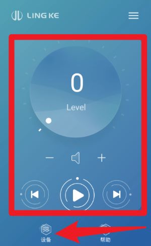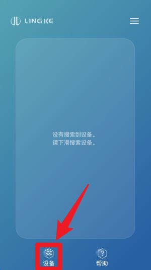 1、点击底部设备按钮进入设备列表页面,向下滑动即可搜索并连接附近的Lingke音箱设备。