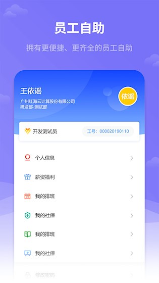 4、高效人事服务:HR可批量管理员工信息,快速处理入职、调岗、离职等事务。