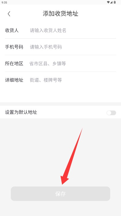 4、按要求完整填写收件人姓名、联系电话及详细地址信息后,确认无误后点击保存设置。