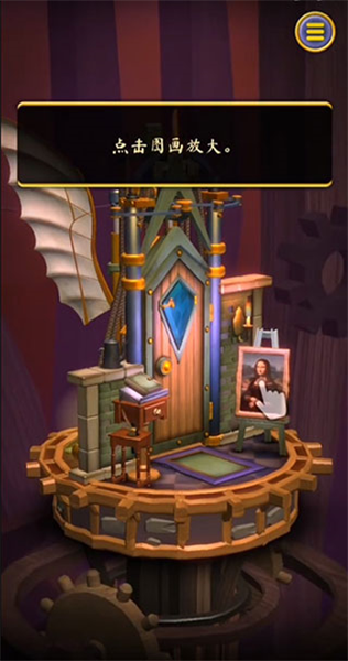 4、来到第一关,玩法非常简单,点击物品就可以放大,我们点击图画。