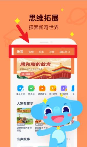 4、在思维拓展栏目中可浏览音频、绘本、趣味学习内容,帮助孩子探索更丰富的知识世界。