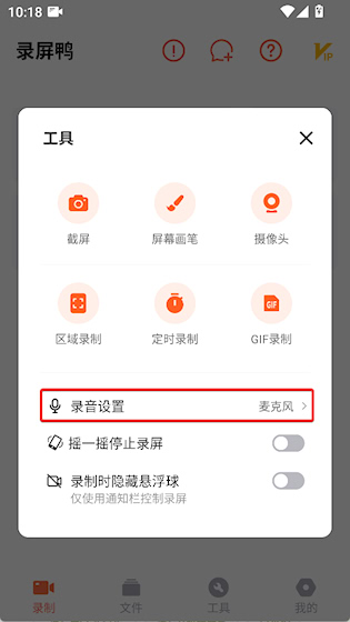 4、悬浮控制:支持悬浮窗操作,在其他应用运行时也能随时启动或停止录制,提升使用便利性。