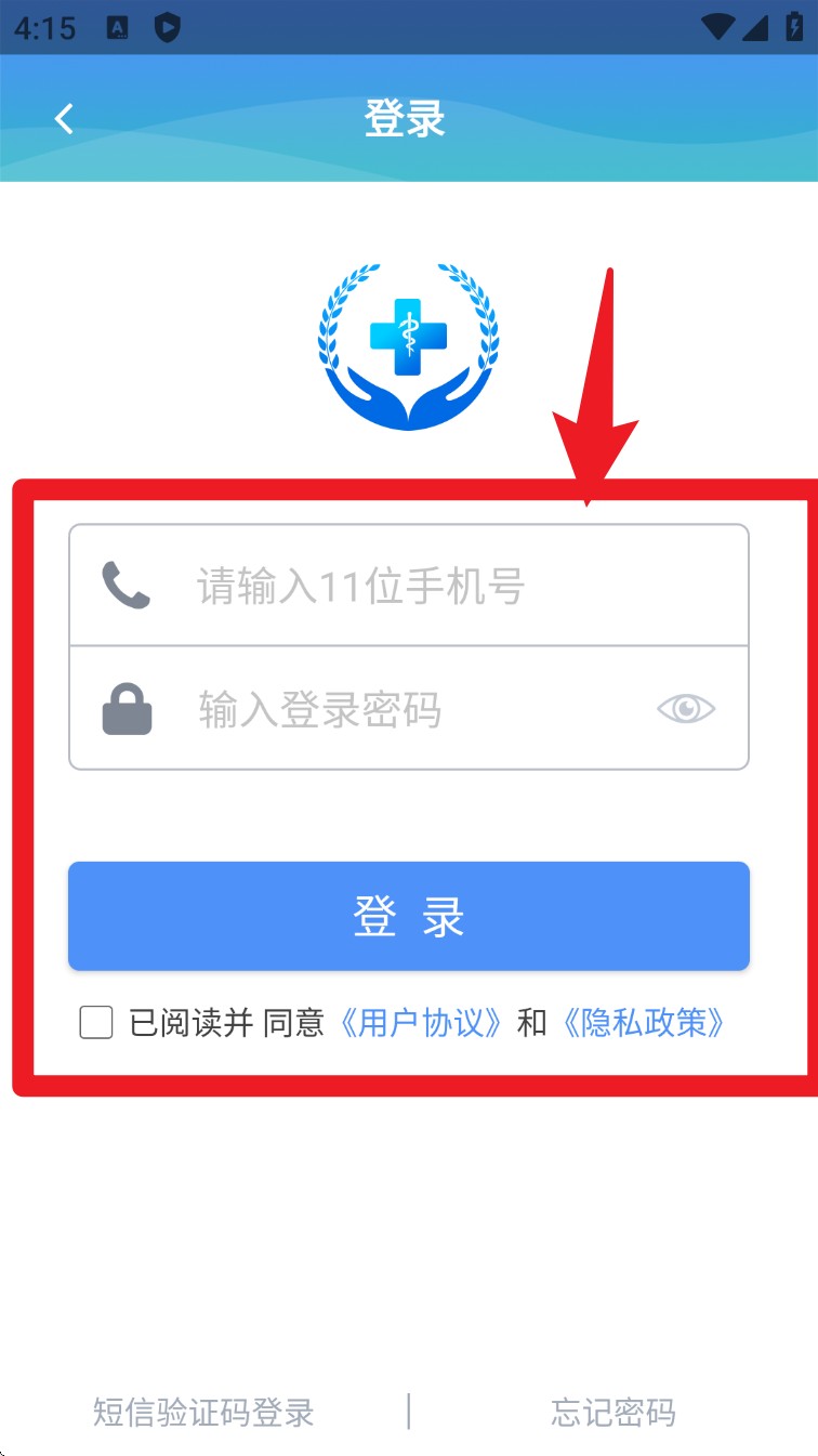 1. 打开App输入手机号和密码完成登录,首次使用需勾选用户协议与隐私政策。
