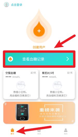 2、登录成功后可点击首页中的查看血糖记录,方便随时查看历史检测数据。