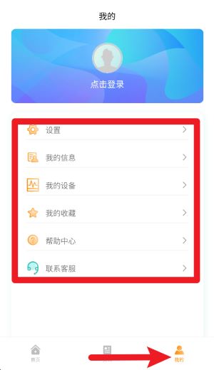 4、进入我的页面可以管理个人信息、设备绑定、收藏文章以及联系客服和查看帮助中心。