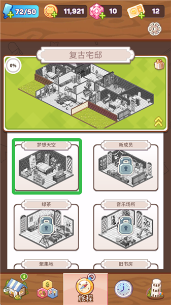 丰富装饰类型解锁机制,完成特定章节即可解锁对应家具,涵盖复古风、乡村别墅风、经典古董风等多种风格。