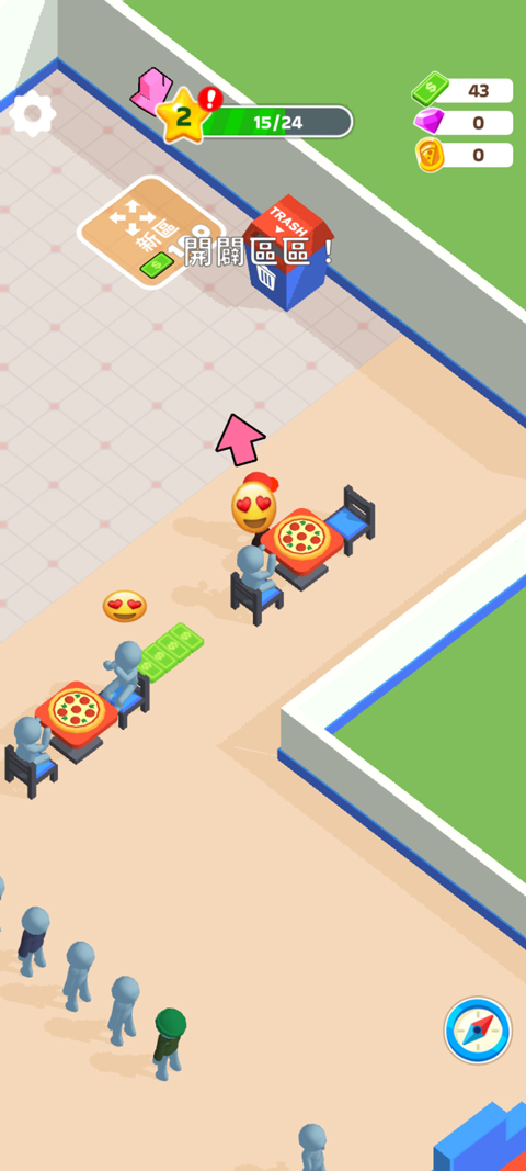 4、升级设施与区域——使用赚取的金币解锁新区域、购买更高效的设备,如自动披萨机或高级收银系统,提高运营效率。
