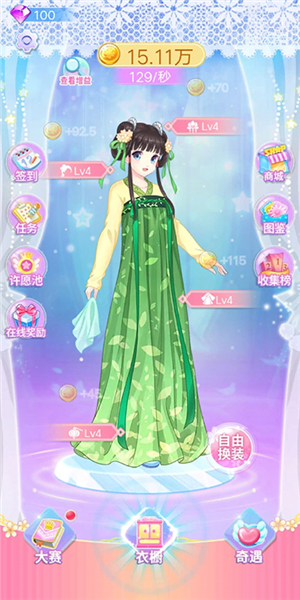 游戏的主要发展线路,从主线任务中可以获取钻石和金币维持游戏的服装开销,通过获取更高的评价得到足够的金币购买美美的服装。