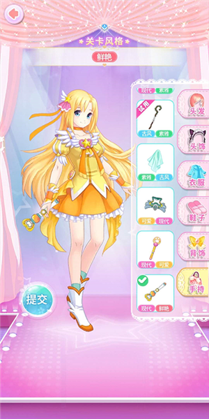 2、在关卡内,玩家要根据关卡要求搭配服装造型,不仅仅只有搭配衣服哦!发型也是必不可少的呢!而且每件服装的属性都是不一样的,玩家一定要注意哦!