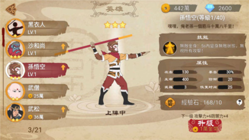 游戏中大家除了要掌握技巧以外,人物的选择也十分重要,这里主要包含有孙悟空、猪八戒、沙僧、白娘子、法海、哪吒等数十个角色,每个角色的解锁方式也各有差异,有的金币、有的钻石,还有的依靠签到也能获得,但不可否认的是由于每个人物不同所表现的投掷武器也千差万别,同时培养升级人物的等级还能很大程度上加强人物的攻击、血量等属性