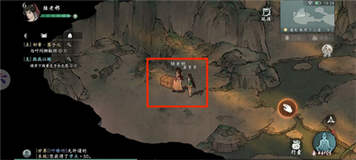 2、当我们跟着主线第一次到这个地方,会先是触发主角被大黄哥欺负抢蒲公英的情景对话,然后我们跟乐无愁对话,她会要求我们下到右边的枯井里面,第一次下井,跟着任务捡道具上来,然后她要求我们再下去一次,这次会出现一条密道。