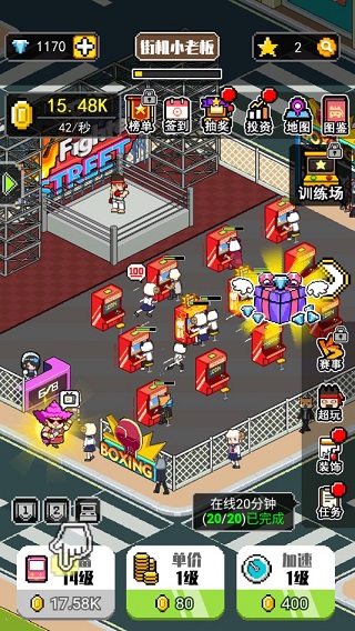 1.经营一家充满趣味的街机店,通过完成各类任务来推进游戏,利用丰富的装饰物来个性化你的店铺。