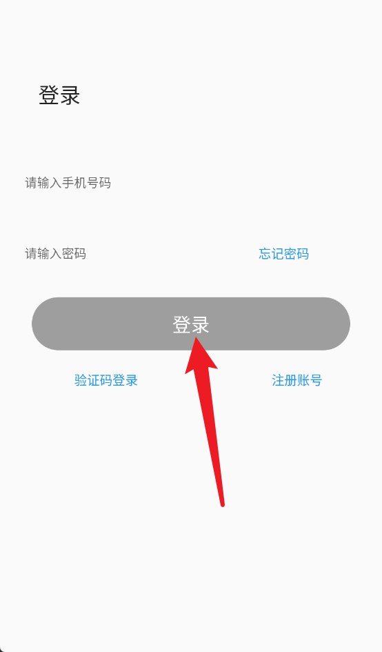 1、在登录页面输入手机号与密码,点击灰色登录按钮完成账号登录操作。