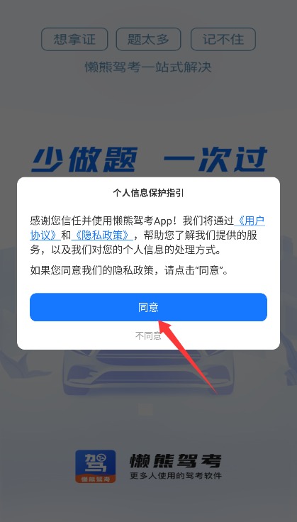 1、初次使用需完整阅读平台服务条款与隐私政策,确认后点击同意按钮进入应用。