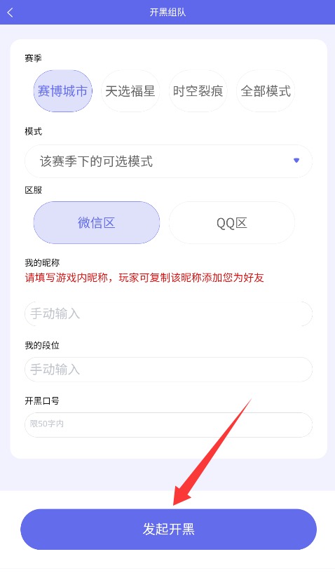 3、设置赛季、游戏模式、服务器等参数后,点击发起组队即可邀请好友开黑。