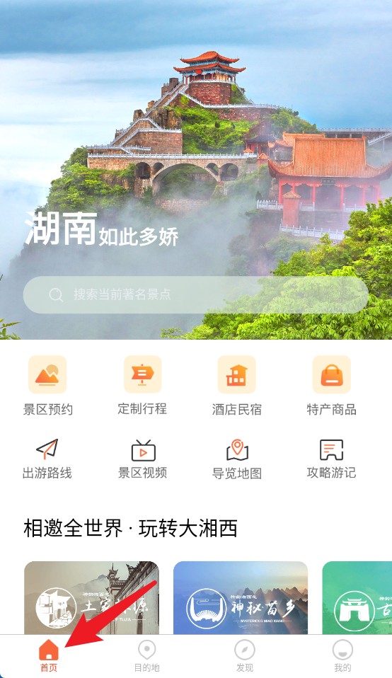 1、点击首页按钮可返回主界面,查看热门推荐、搜索景点,并获取快速导航功能入口。