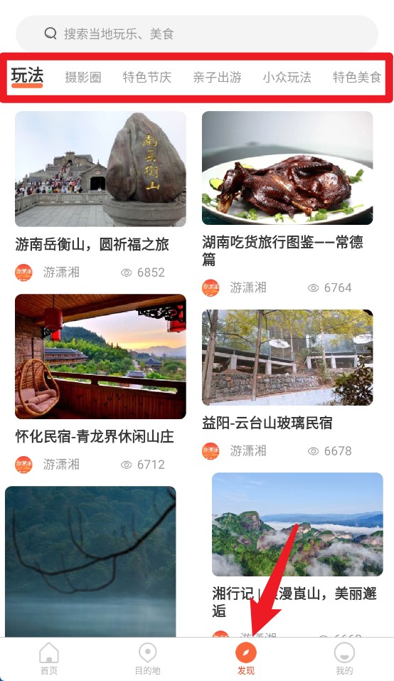 3、点击发现按钮可浏览各种特色玩法,如摄影、节庆、美食等,获取旅行灵感和实用攻略。