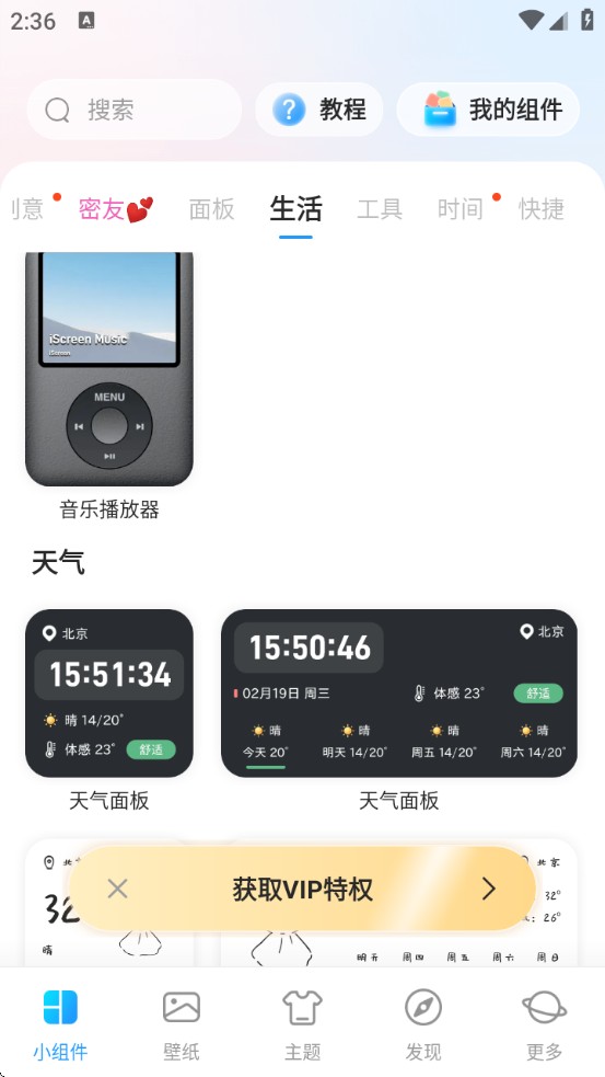 3、选定心仪的小组件模板,点击进入后,下方会出现保存到我的组件选项,可获取iScreen桌面小组件最新版本
