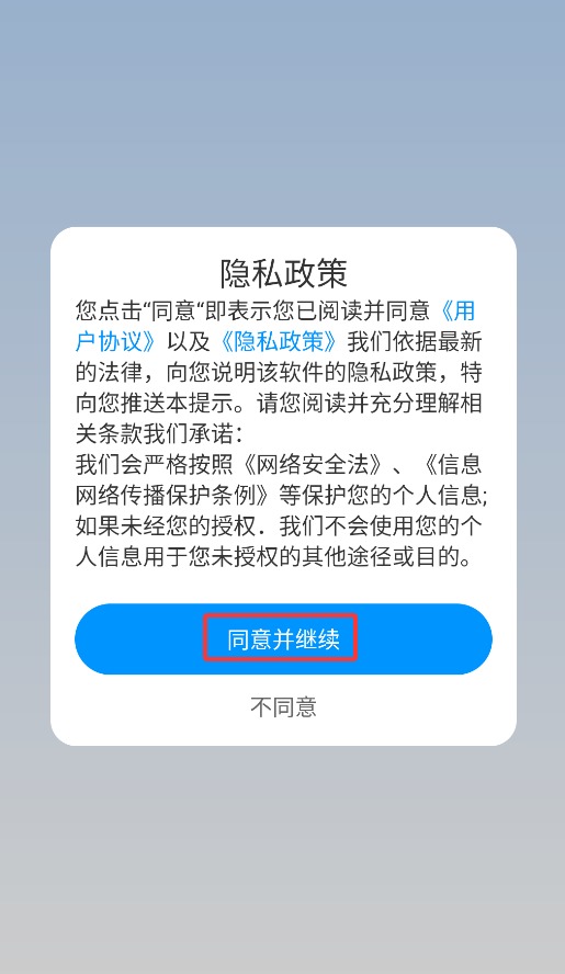 1、首次启动APP时需点击同意用户协议弹窗,方可进入主界面开始使用。