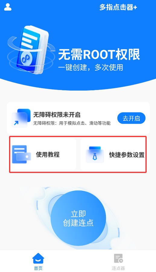 4、连点器板块可一键创建自动化点击任务,实现高效多指协同操作。