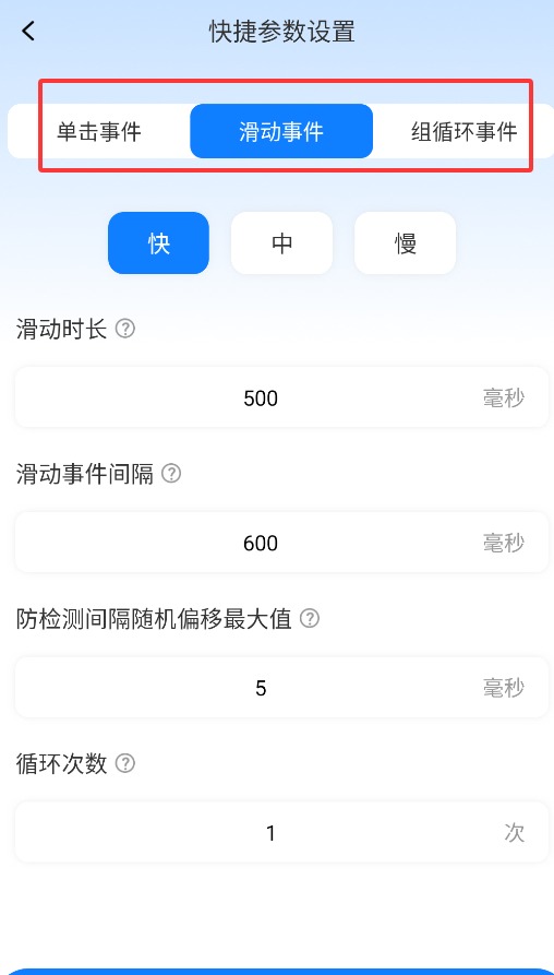 3、参数设置支持自定义单击、滑动及循环事件组合,适配复杂操作需求。
