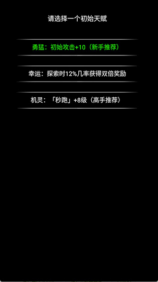 1、初始天赋优选“秒跑”:该天赋提供60%逃跑成功率,且成功后80%概率返还10点精力,极大提升前期生存容错与资源积累效率。