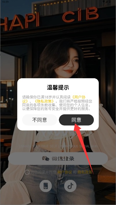 1、初次使用需阅读用户协议与隐私政策,确认无误后点击同意按钮进入登录界面。