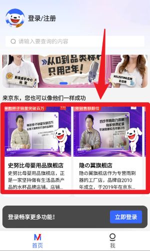 4、在商家展示模块中,用户可以查看成功案例与经验分享,学习不同商家如何在京东平台上实现从起步到规模化经营的全流程经验。