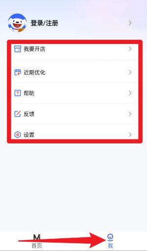 5、在我的页面中,用户可进入我要开店、近期优化、帮助、反馈、设置等模块,进行个性化管理、问题反馈和账号信息设置。