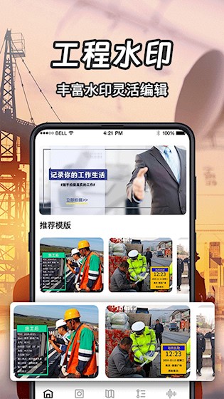 2、多样水印模板:内置工作打卡、工程记录、旅行纪念等多种风格模板,还能自由组合文字、图标、天气等内容,满足不同使用偏好。