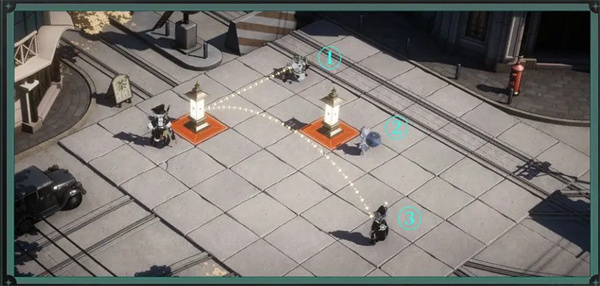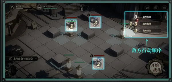 4、进入战斗后,敌人会率先行动并决定攻击方式。但是它们需要等待我方行动结束后才能进行攻击。我们可以趁此机会,根据敌人的行动采取应对方式。利用角色技能推动敌人,使敌人改变攻击目标,保护麒麟灯以免受伤害。