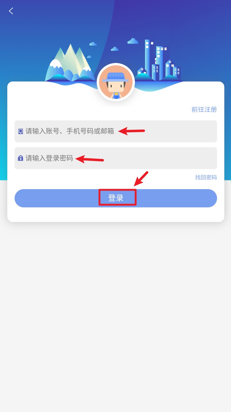 2. 输入账号、手机号码或邮箱及密码,点击登录完成认证。