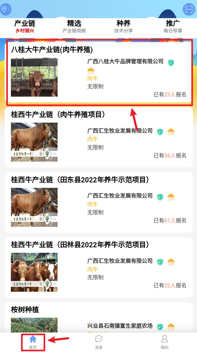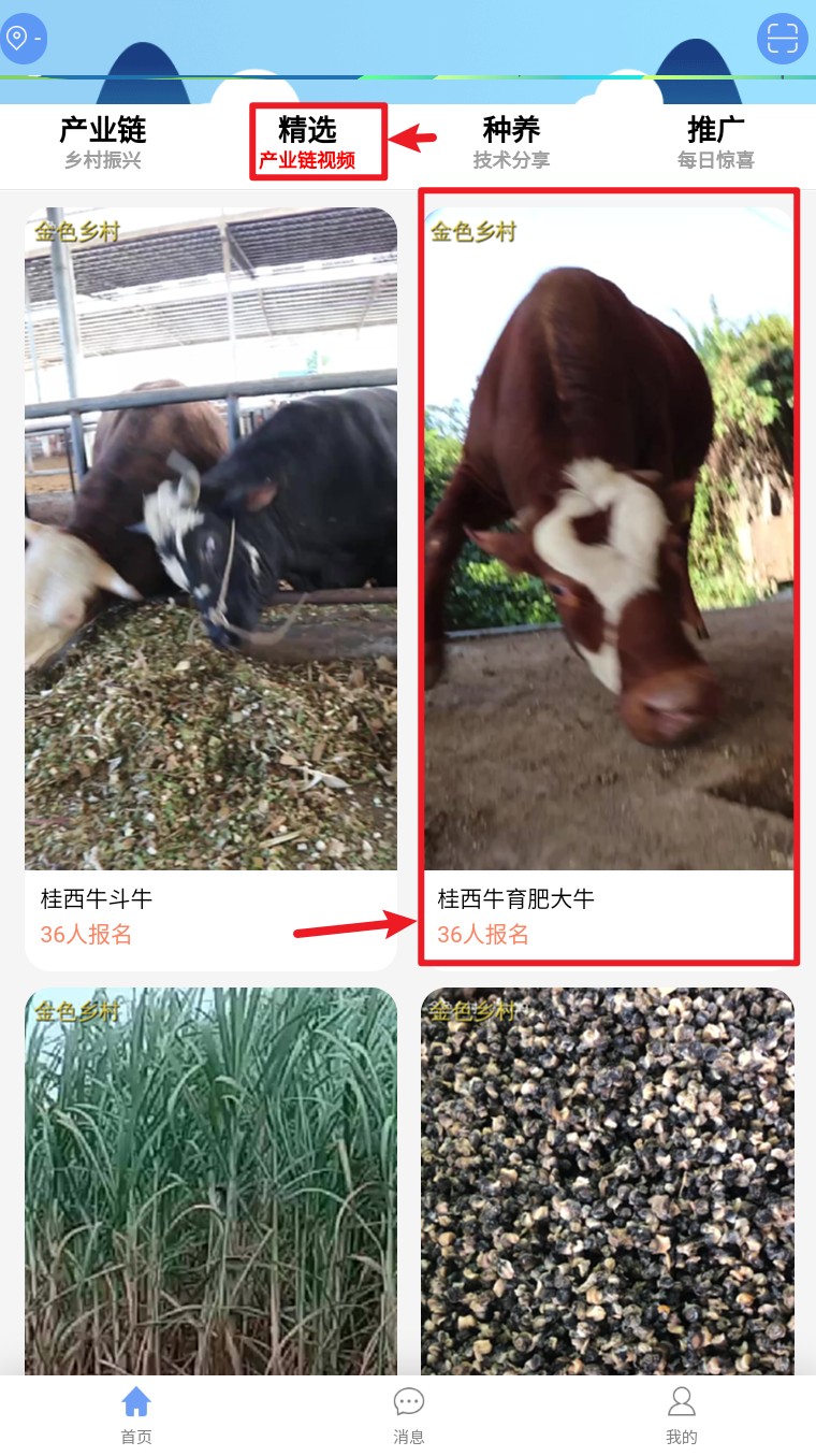 5. 切换至精选标签页可浏览各类产业链视频,了解更多项目信息。