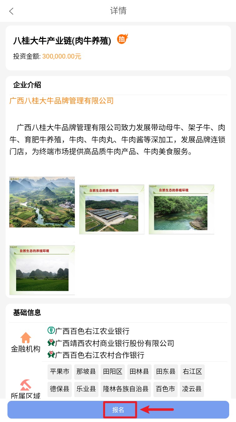 4. 点进产业详情页后可查看企业介绍与基础信息,点击下方报名即可提交。