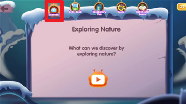 3、进入课程页面后点击左上角Cartoon图标,观看主题相关的趣味卡通视频,帮助理解学习内容。