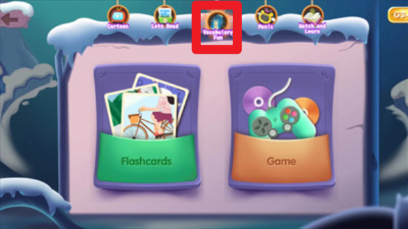 4、在顶部导航中点击Vocabulary Fun图标,可选择Flashcards或Game模式,通过卡片或游戏的方式巩固词汇。
