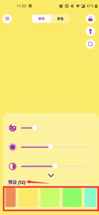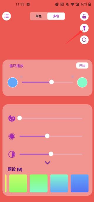 3、调节好氛围灯光亮后,点击右上方手电筒按钮,即可开启灯光。