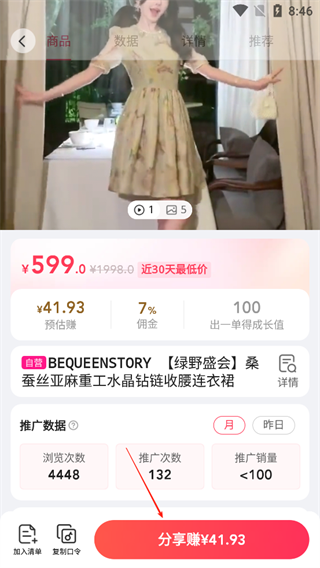 3、页面会显示“分享赚XXX钱”,明确标注佣金金额;