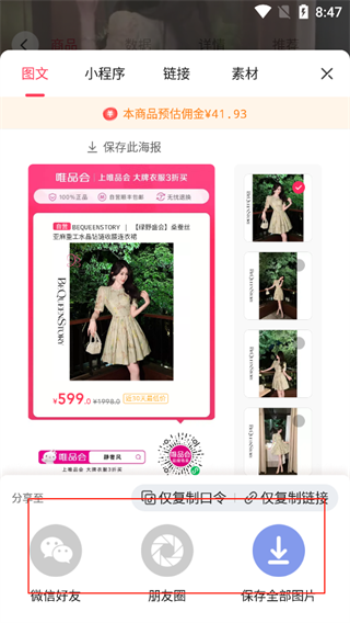 1、分享唯品会商品给好友购买可获佣金,平台提供超高佣商品、唯享客专享价等独家优惠,可购买可推广;