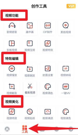 3、进入工具页面可使用视频功能、特效编辑等多类型创作工具,满足从剪辑到后期优化的全流程需求。