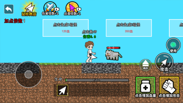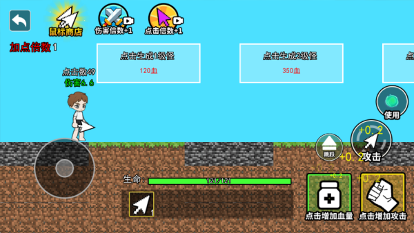 2、从第一关开始,你的伤害力只有一点,可以点击上方的视频,解锁伤害倍数;