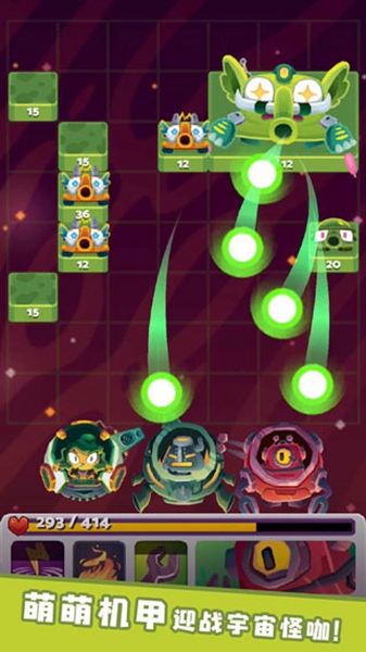 3、核心操作借鉴经典弹球玩法,却融入了太空射击的独特爽感:要观察战场布局、敌人站位,精准测算子弹反弹角度与轨迹,释放每一轮攻击,让子弹在星际障碍物与敌群间穿梭,实现多目标打击。