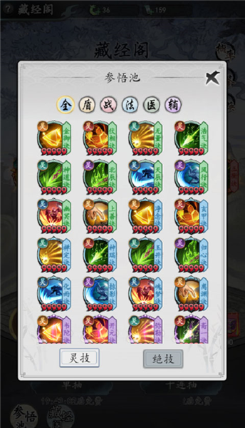 灵技-辰月仙诀(俗称无敌盾,仙雾通关必备),神通身法-带闪避属性。