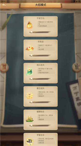 象棋大招版是一款双人对弈策略象棋游戏,承载千年中华文化深受大家的喜爱,融入了许多不同的棋盘,玩家将与对手各持16枚棋子,在9 条竖线与10条横线交织中进行放置,灵活调配你的兵法与策略,围堵对方主帅,将其逼入无处可逃的绝境即为胜利,玩起来十分考验玩家的策略战术,感兴趣的玩家不要错过哦!