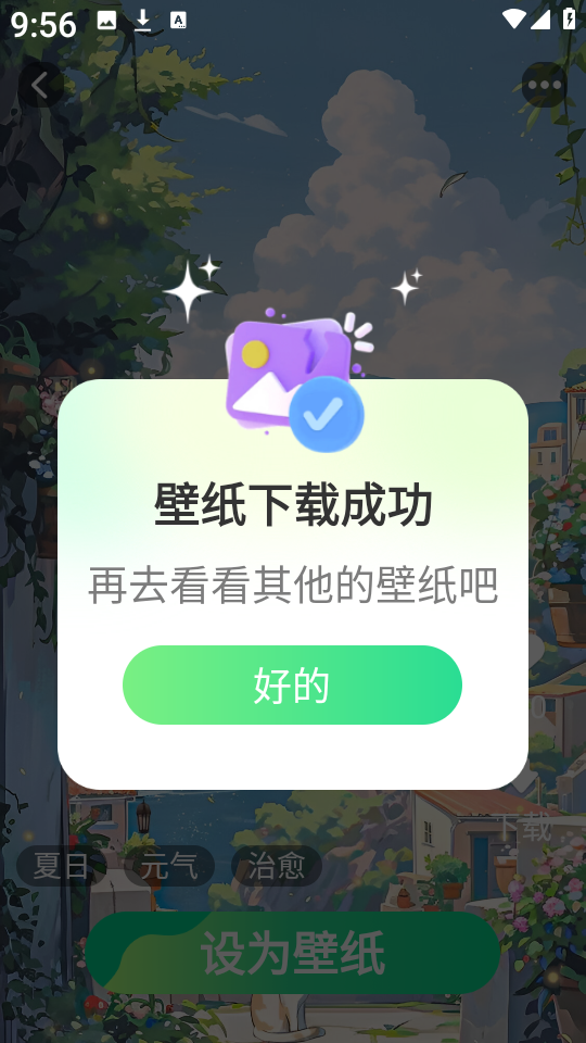 2、点击即可将喜爱的墙纸设置到手机,还能分享给身边朋友;