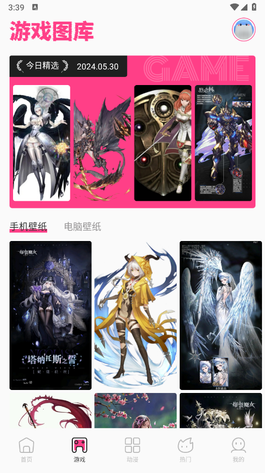 3、进入“游戏”和“动漫”板块,发现丰富游戏及动漫壁纸资源,实现一站式查看;