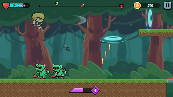 2、自动近战机制:角色靠近敌人时会自动挥剑攻击,无需手动释放普通攻击,让玩家更专注于跑酷与闪避操作。