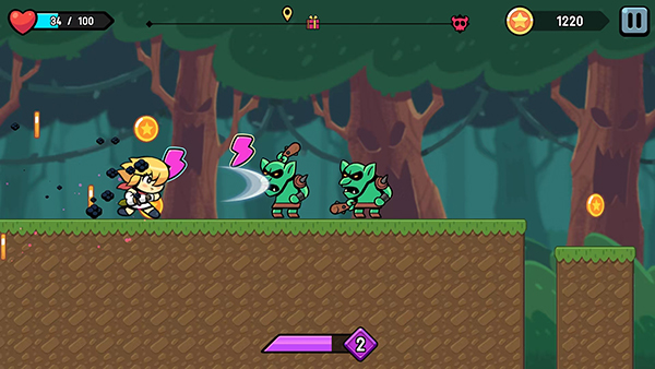 2、当我们触碰屏幕的时候可以进行一边跳跃一边进行空中攻击,连续点击屏幕还可以实现二连跳,