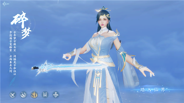 4、战斗特色:碎梦是优雅与危险的综合体。她以轻灵的身法穿梭于敌阵之中,剑光如水银泻地,无处不在。技能使其拥有卓越的位移能力,能瞬间创造一片持续造成伤害的剑阵。