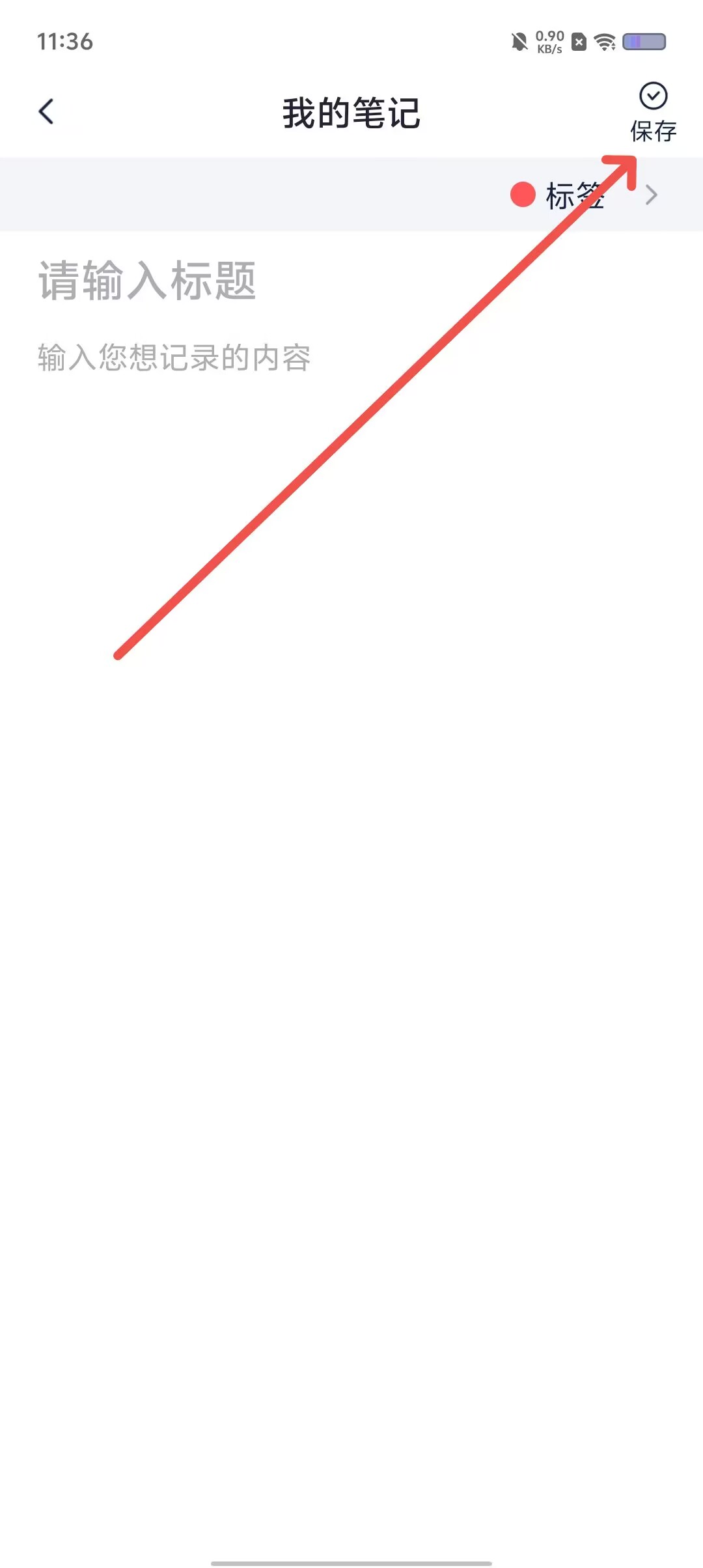 第三步,输入标题,笔记内容,点击右上角即可保存。